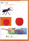 作品名 「ひらめきは舞い降りる」「ヒラメキ」 ひょろりとのびた細い枝の先には、大きくて真っ赤なリンゴがぶらさがっています。もうひとつのリンゴは、まるでその絵の中からゴロンと転がり出てきたかのよう。童話の一場面のような、ほのぼのとした味わいの中にも、シンプルなかたちと色の組み合わせが強いインパクトを感じさせ、みる人にさまざまな“ヒラメキ”を呼びおこしてくれます。